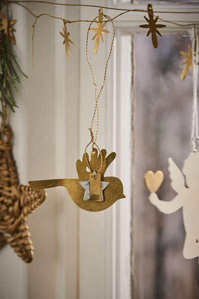 This exquisite bird for hanging, and part of Ib Laursen's 'Gloria' line of brass decorations, is made of genuine brass. Brass is a soft material and thus requires gentle handling. The colour of brass can have different shades, and it can change colour after being touched or due to the influence of air, which gives it a beautiful patina. Brass polish can be used for cleaning, but please handle with care.