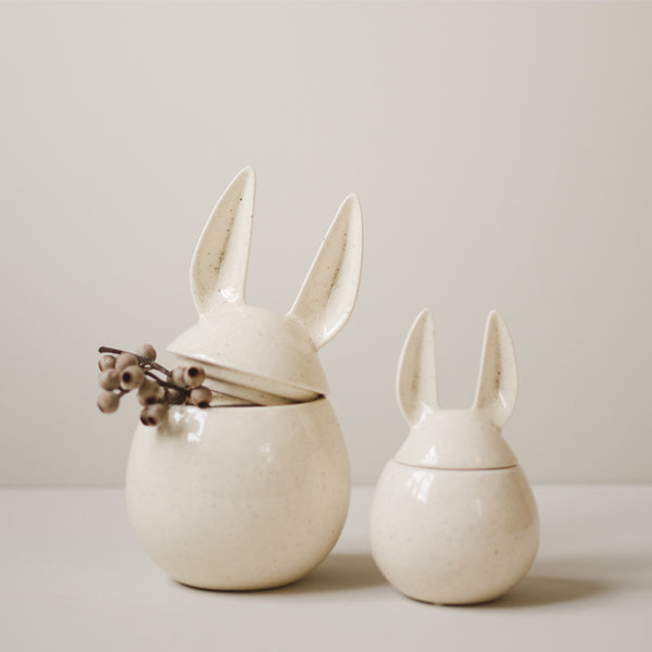 The sweet ceramic rabbit with removable lid in a Vanilla colour.
