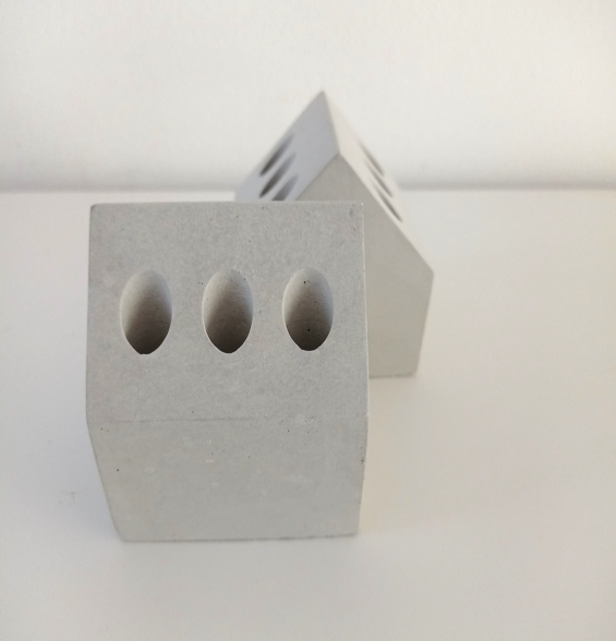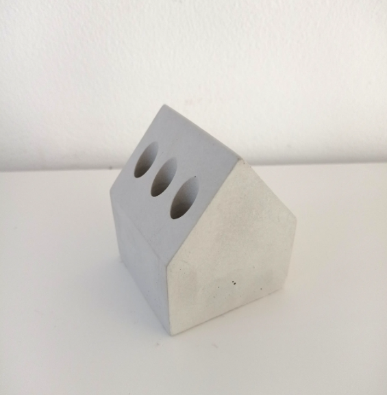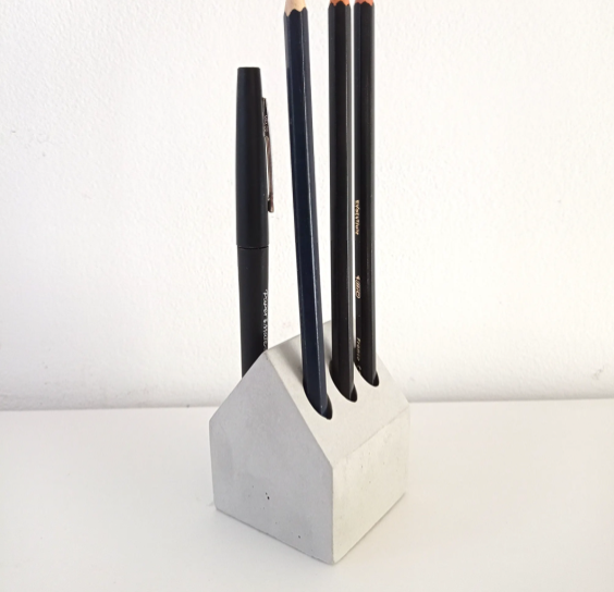 Bring modern minimalism to your workspace with our Concrete House Pen & Pencil Holder. Handcrafted in Paris from sleek grey concrete, this unique accessory features a charming house silhouette and six cavities—perfect for organizing pens, pencils, and markers. Its sturdy, contemporary design adds a stylish touch to any desk, making it an ideal gift for creatives, students, or anyone who loves functional décor.