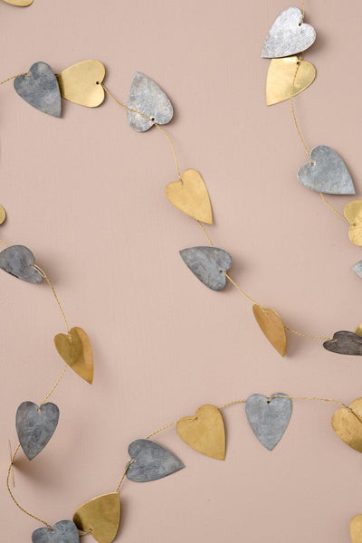 String of hearts made from a mix of metal and brass, quickly bringing a magical Christmas atmosphere to your home. Brass is a soft material and therefore requires careful handling. The colour of brass can vary in shades and may change after being touched or exposed to air, contributing to its beautiful patina. Brass polish can be used for cleaning, but it should be applied with caution.