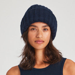 The beanie is one size but the navy style runs small.