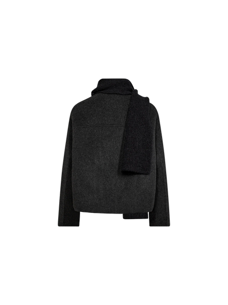 This short wool jacket is a timeless piece, designed in a refined mélange pattern with a sleek o-neck silhouette. Thoughtfully handcrafted, it showcases a sophisticated button closure and functional pockets for effortless versatility. Ideal for layering, this jacket brings an elegant finish to any look, making it an essential wardrobe favourite.