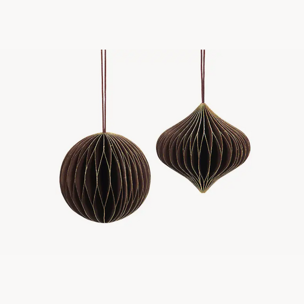 Handmade hanging paper decoration with golden details. Perfect when decorating your Christmas tree. Made from paper. Two designs in one pack.