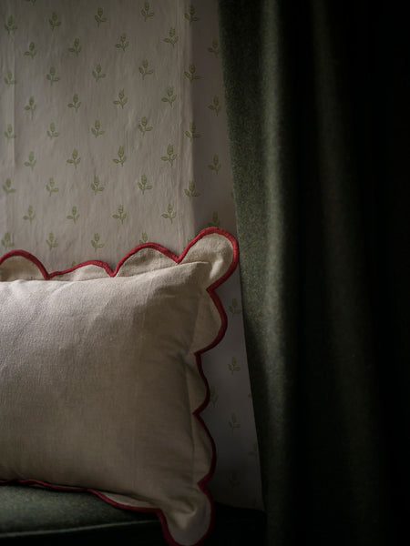 This elegant scalloped cushion layers so beautifully with our velvets on a sofa, bed or occasional chair.