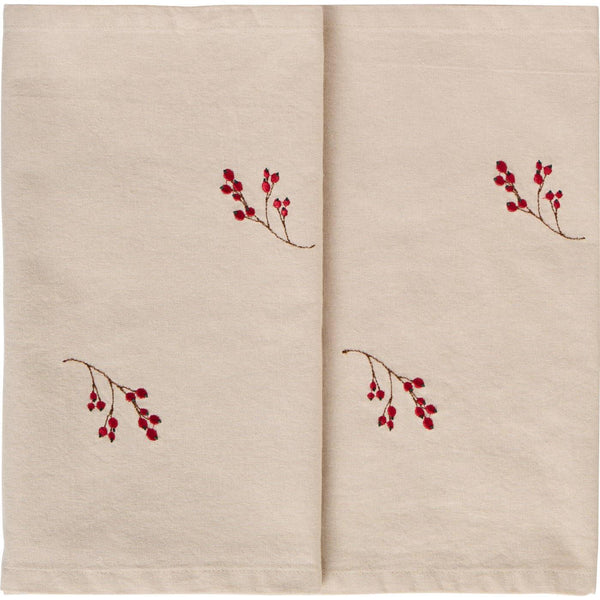 Linen-coloured table runner with embroidered winterberry branches – creates a cosy, classic atmosphere for your Christmas table and festive winter gatherings.